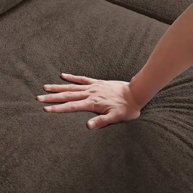 The standout feature is the hidden coffee table (29.92" W x 20.47" D x 9.45" H). When needed, it serves as a stable surface for drinks and snacks; when not in use, it simply tilts up to conceal neatly behind the back cushion—super convenient and space-saving.