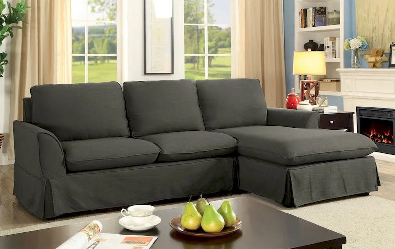 Grey Linen Skirted L-Shape Sectional Sofa - Right Facing